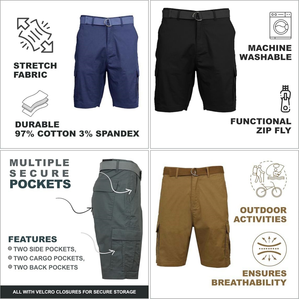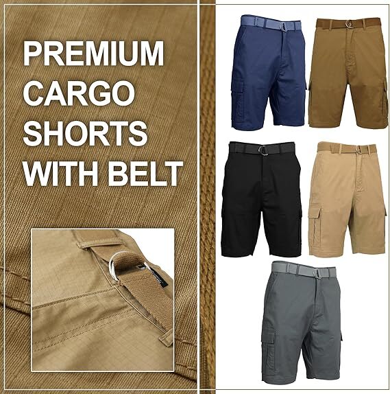 Modern Fit with Functional Design – These premium cargo shorts feature a tailored silhouette crafted with a ripstop pattern and include a tonal D-ring belt, button closure, and functional zip fly for everyday style and ease.