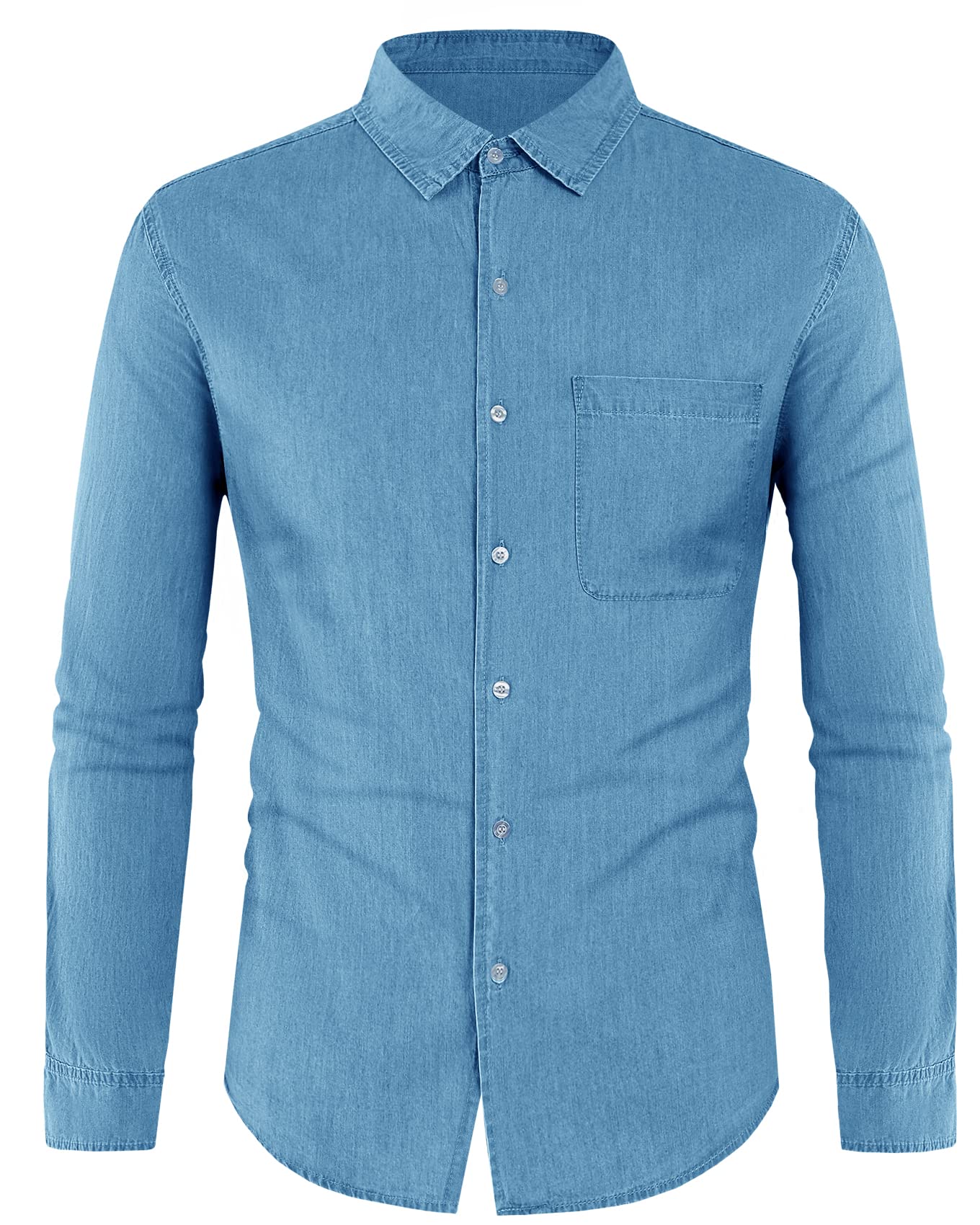 - Classic casual button down shirt for men with comfortable fabric, featuring a turn down collar neck, button up closure, single chest pocket, loose fitting and plain color.