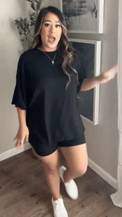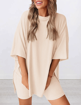 Crew neck and loose fit for comfort and a figure-flattering look that shows off your curves.