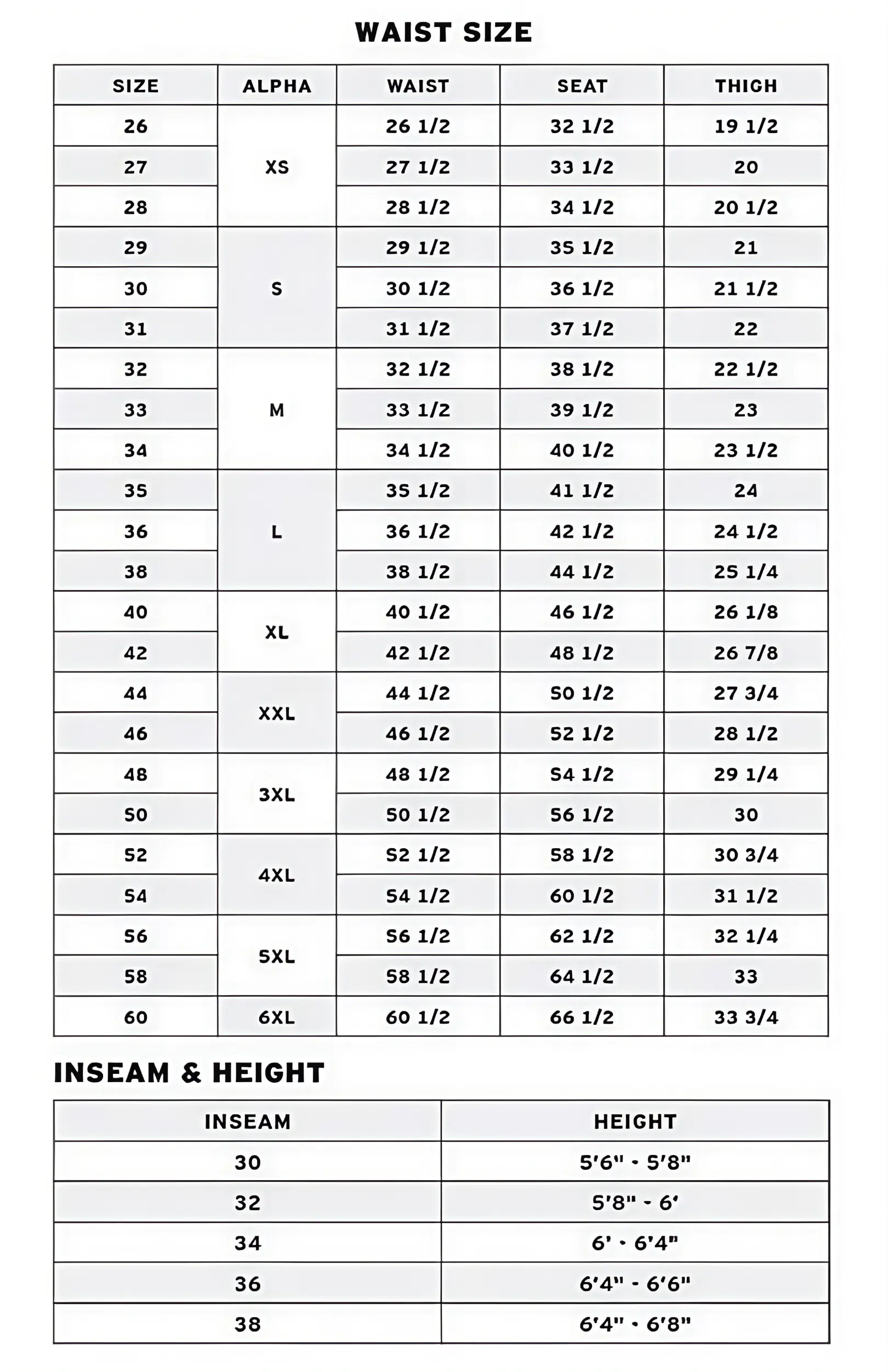 Size chart(inch)