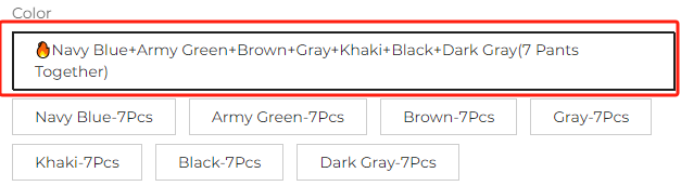 ❗Selecting this option will automatically ship 7 pieces of pants in different colors❗