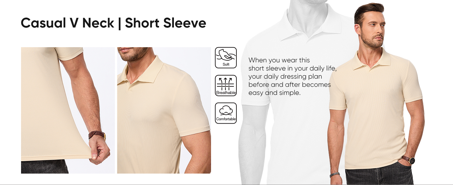 Fashion V-Neck Design: This polo shirt is designed with a v-neck, which differentiates it from traditional polo shirts, allowing you to show off your man's mature charm while adding to the overall fashion of your look.