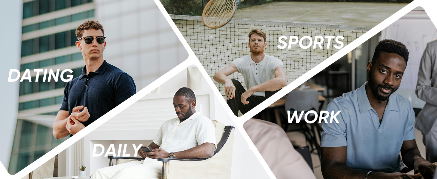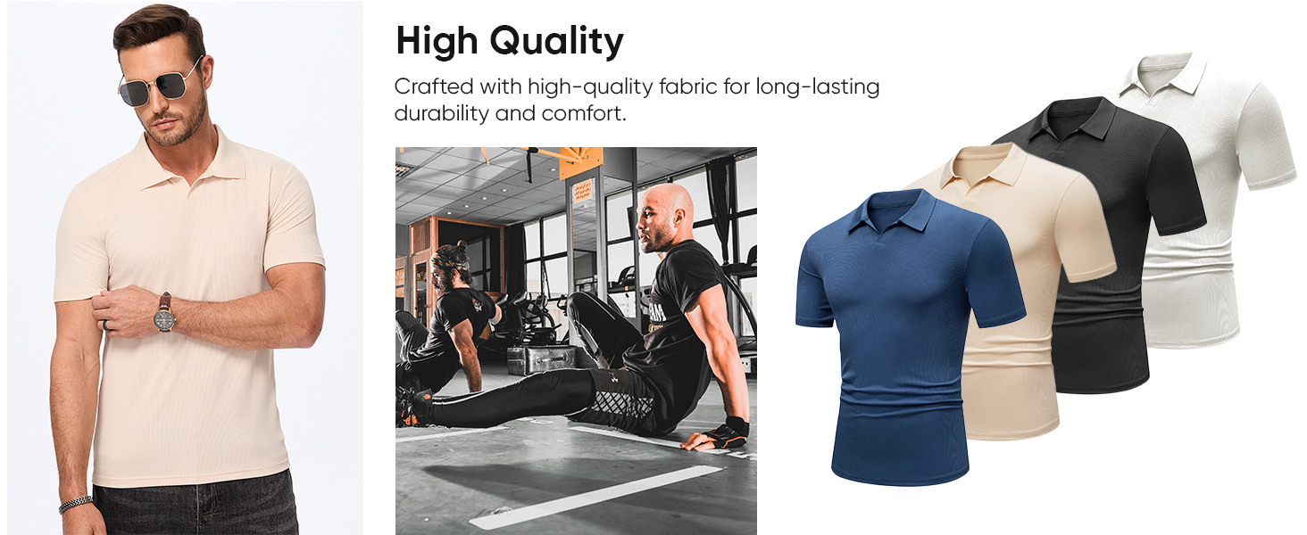 Match Tips: The men's muscle slim fit polo shirts are designed to fit snugly against your body, accentuating your muscles and creating a sleek silhouette. Wear it with shorts or jeans for a casual look, with suit pants or under a jacket/blazer for a business look.