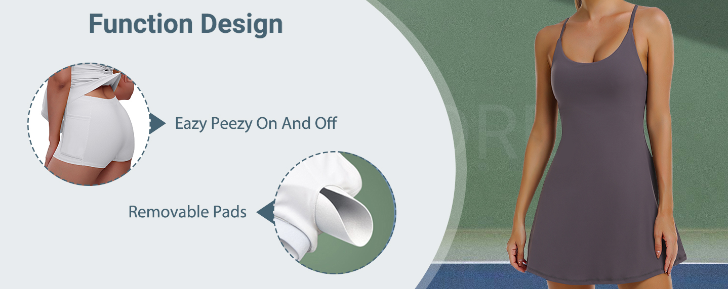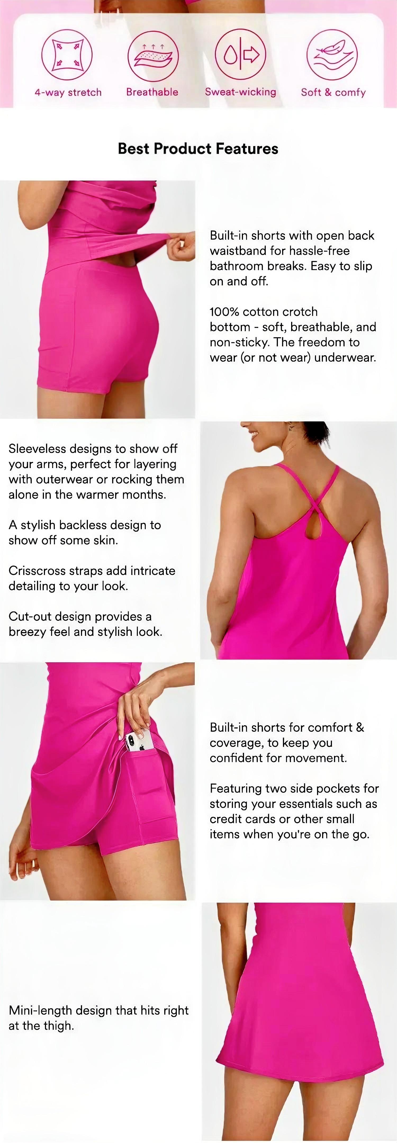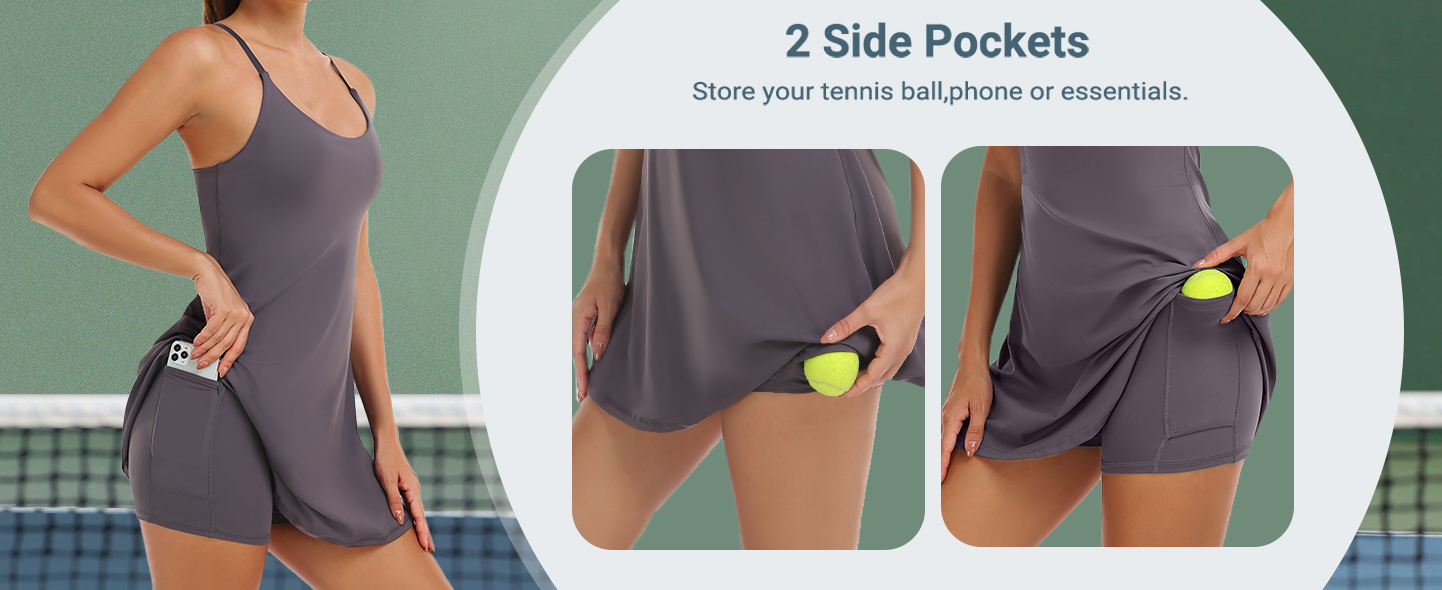 - ★【Design】:The Athletic Casual dress Designs with adjustable strap and X-cross Teardrop back design. Featuring removable pads for customized support only when and where you want it.Built-in shorts for comfort & protection (shorts are not separate).Featuring two side pockets for storing your essentials such as tennis ball & credit cards or other small items when you're on the go.
