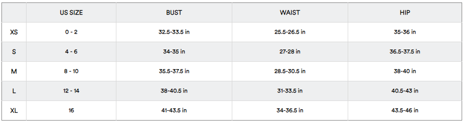 SIZE CHART(inch):
