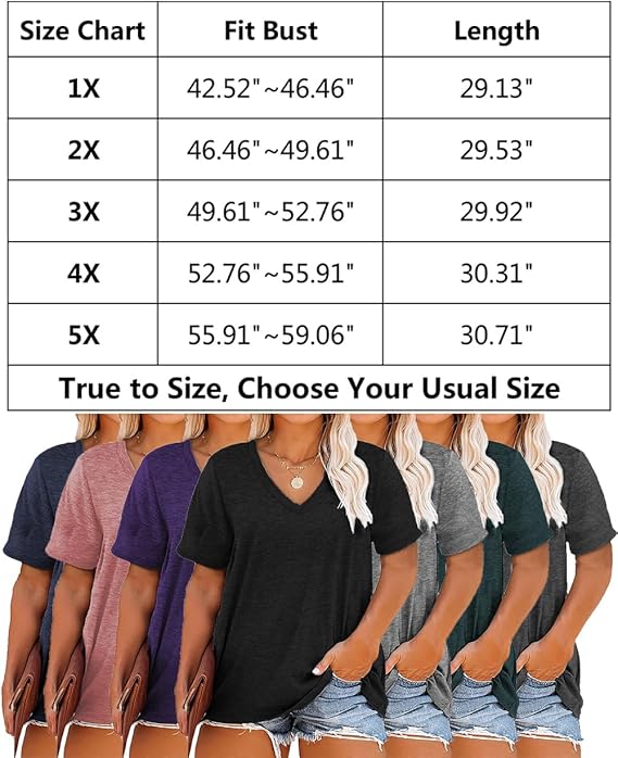 - 【US Plus Size】True to Size, Usual Size will be Fine. 2X, 3X, 4X, 5X Plus Size Shirts. You can also Refer to Our Size Chart on the Picture. Various Colors are Available for this Plus Size Summer Tunic Tops.