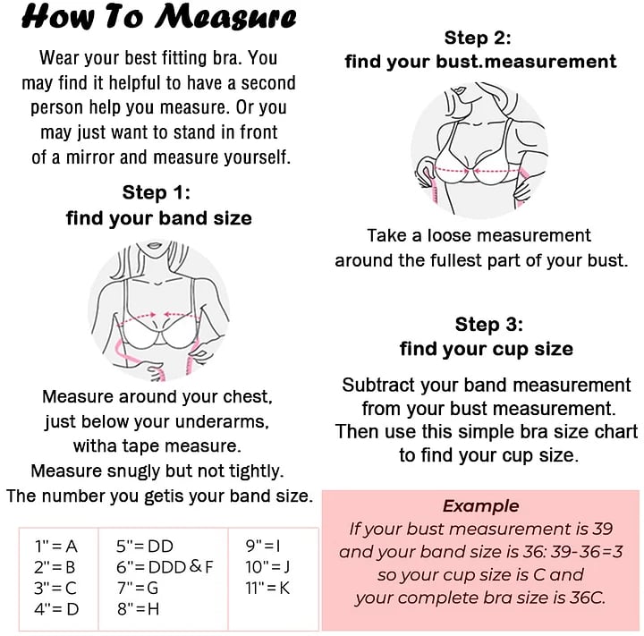 😘If you don’t know the size of your bra, you can order it according to the size chart at first