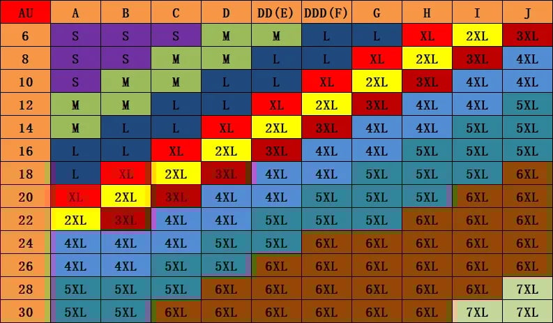 - Sizes : S, M, L, XL, XXL, 3XL, 4XL, 5XL, 6XL (fits for 28A to 48J)