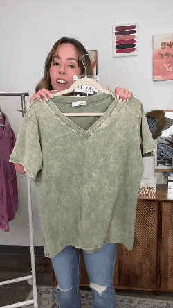 • Soliel Acid Wash V-Neck Relaxed Fit Top - BACK IN STOCK