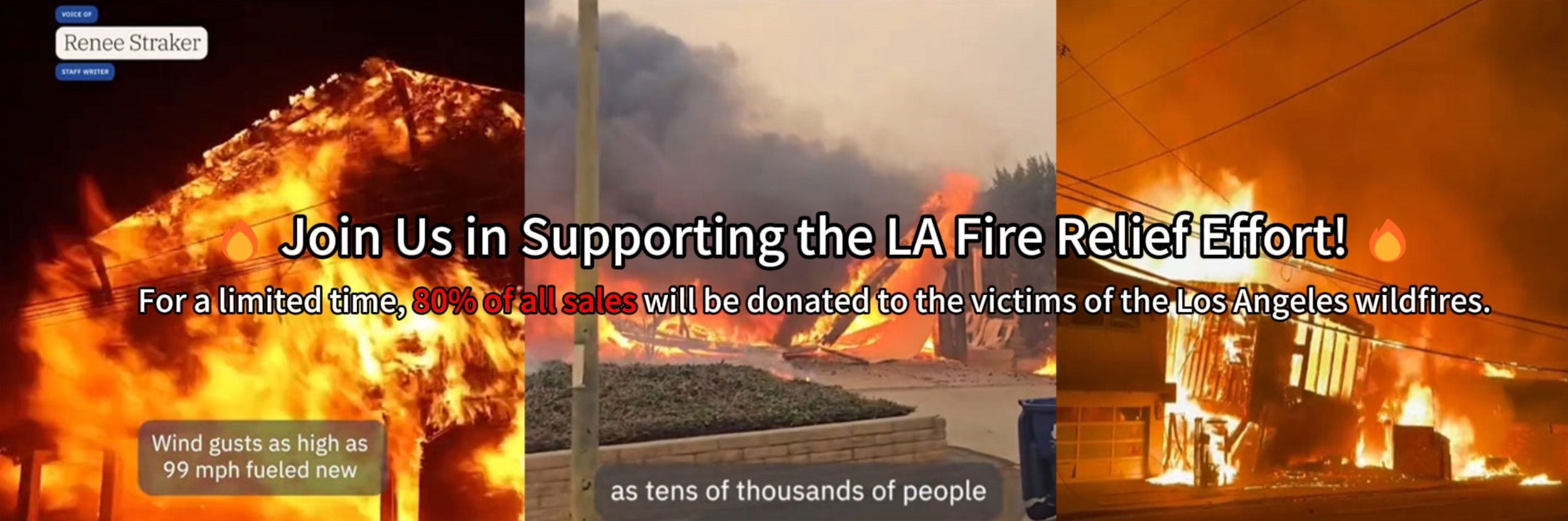 🙏God Bless Los Angeles🔥In the wake of the devastating fires, for a limited time, 80% of all sales will be donated to the victims of the Los Angeles wildfires. We hope to help those who have lost their financial resources due to the fires.