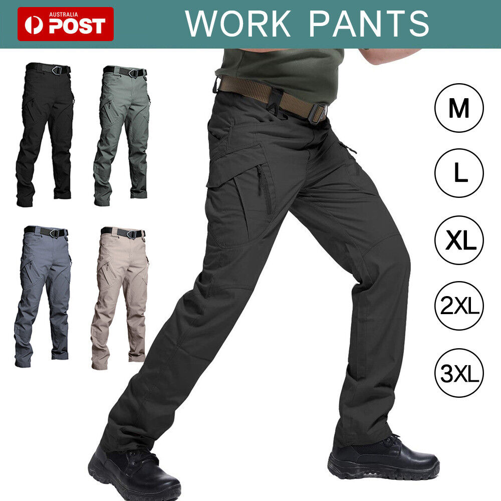 • Men's Cargo Pants 100% Cotton Work Trousers Tactical Combat Outdoor Hiking Pant