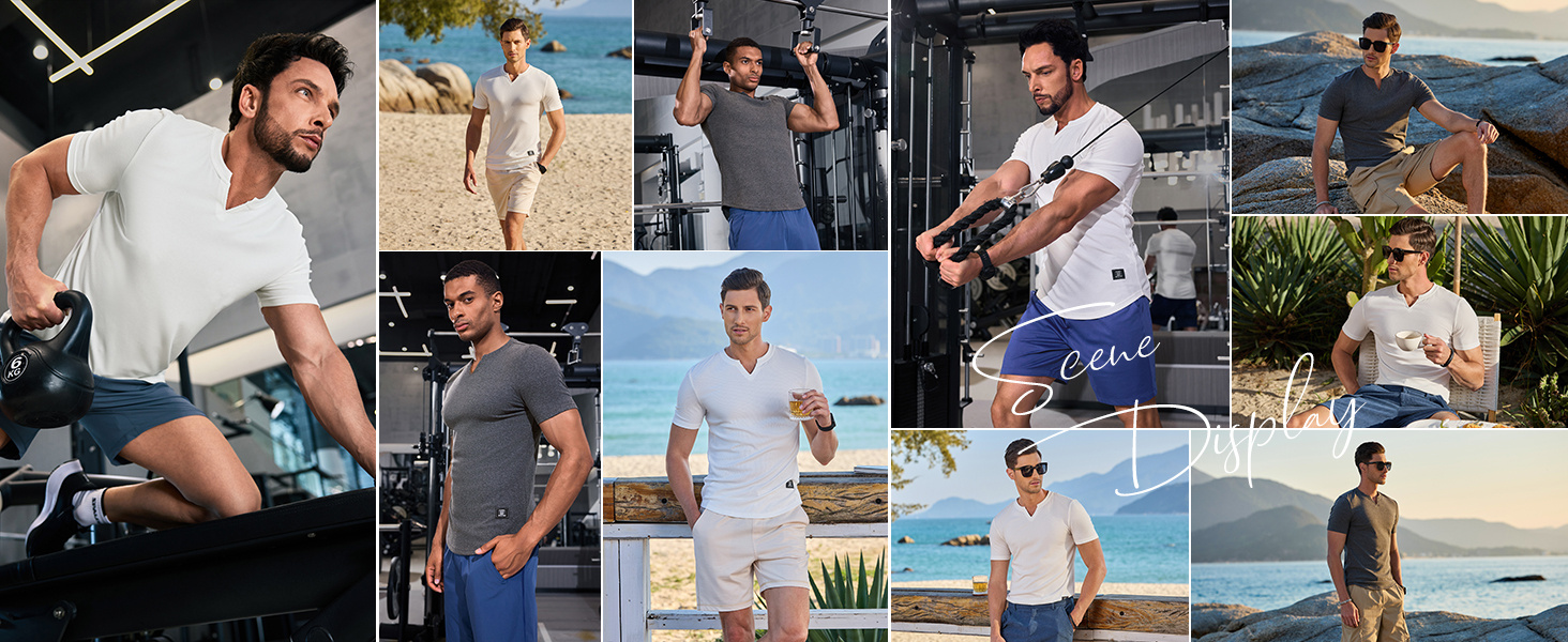 - Multiple occasions: This short sleeve muscle T shirt Running,joggers,power walking,cycling,hiking,gym training. Pair them with chinos or jeans for casual daily wear. These versatile longline T-shirts are essential basic garments that every man should have in their wardrobe. Suitable for all seasons, these T-shirts can be worn to the office, on a date, to the club, to the beach, or simply for casual daily wear.