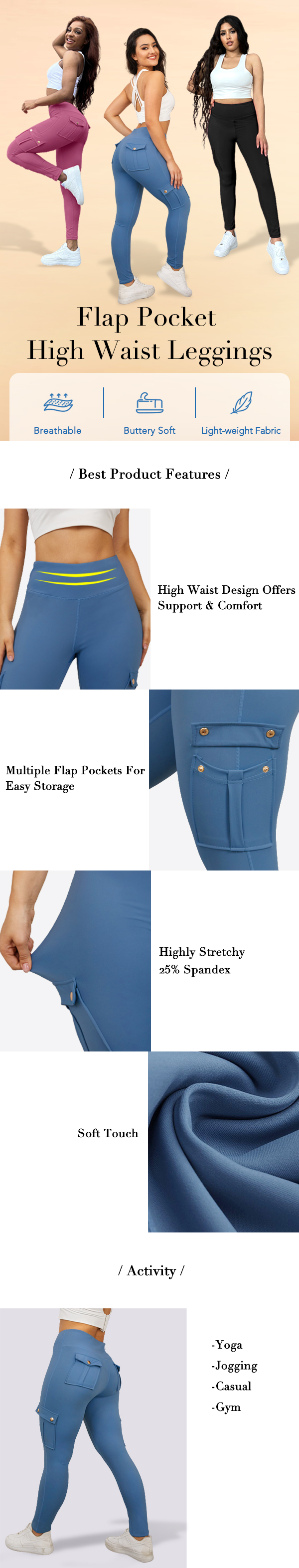 • 💕Solid Flap Pocket High Waist Sports Leggings