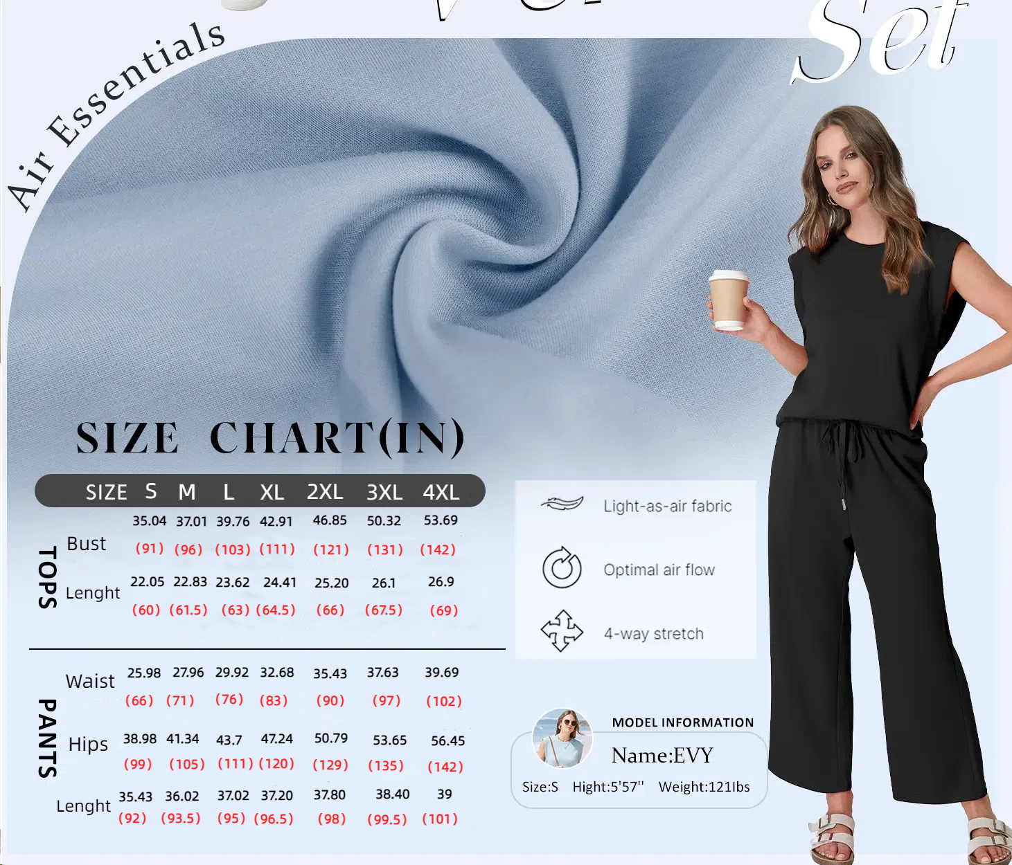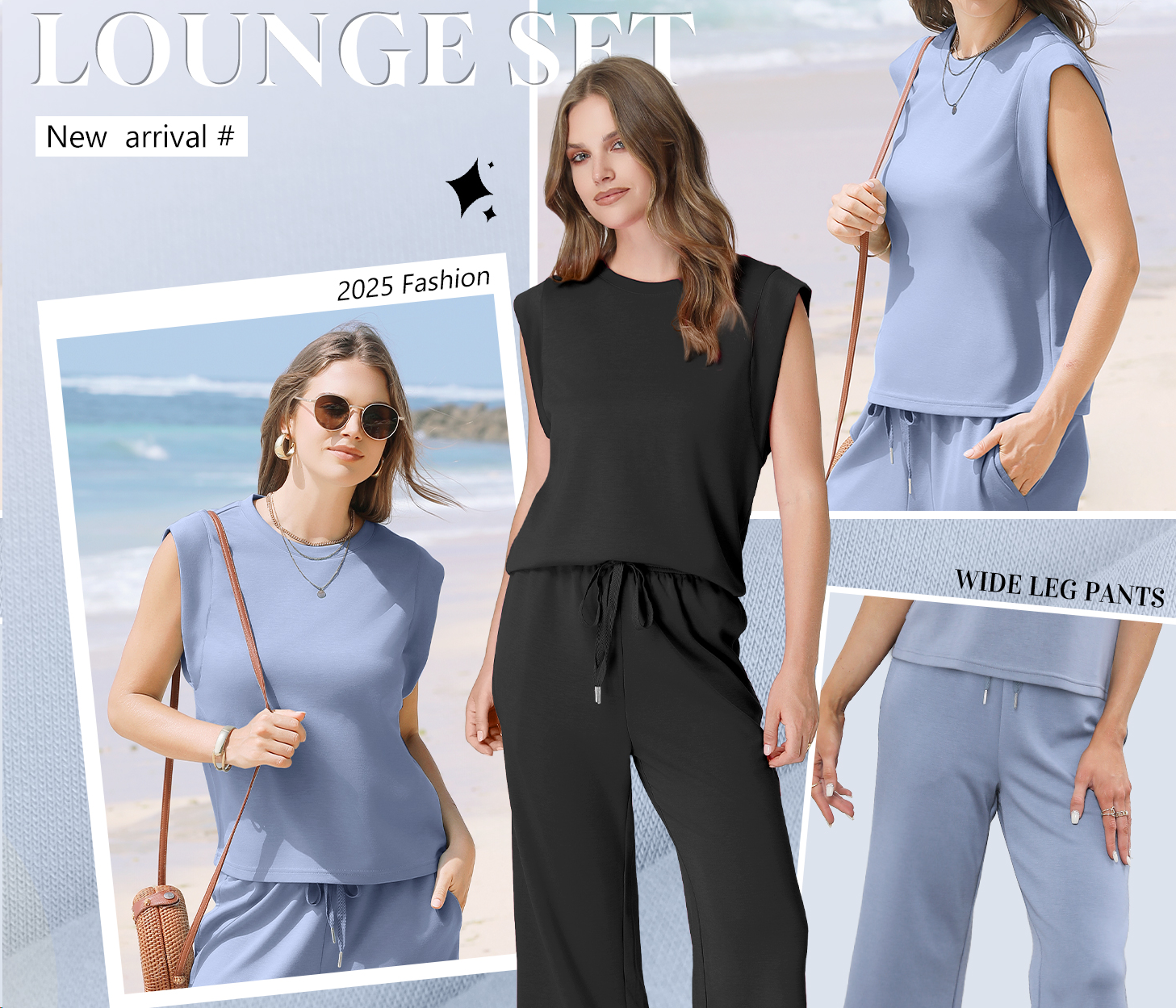 - Top: This travel outfits for women 2 piece sets are Crewneck tops/ sleeveless tops/ This basic cute loose top is long enough to hide your belly,and the extra lining design allows you to prevent exposure and travel easily.